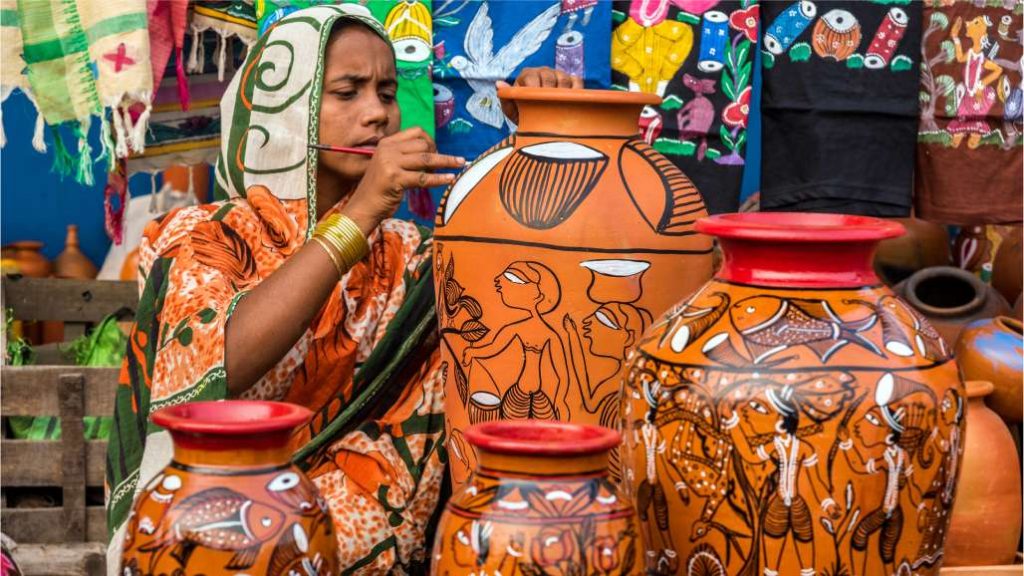 Terracotta: Earthenware that’s each purposeful and ornamental, standard in West Bengal and Madhya Pradesh.