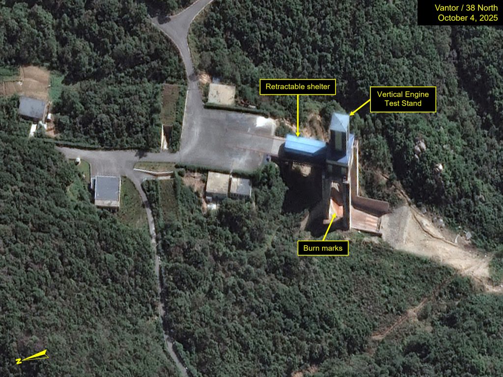 Imagery from October 4 revealed restricted burn marks within the exhaust bucket, suggesting a check of a smaller, higher stage rocket engine had occurred. The orange residue means that the engine makes use of gasoline and nitric acid or nitrogen tetroxide oxidizer. China and Russia, together with North Korea, extensively use UDMH gasoline of their launch autos. Seen orange stain streaks from gasoline and oxidizer, together with streaks from cooling the engine exhaust, are noticed within the flame bucket.