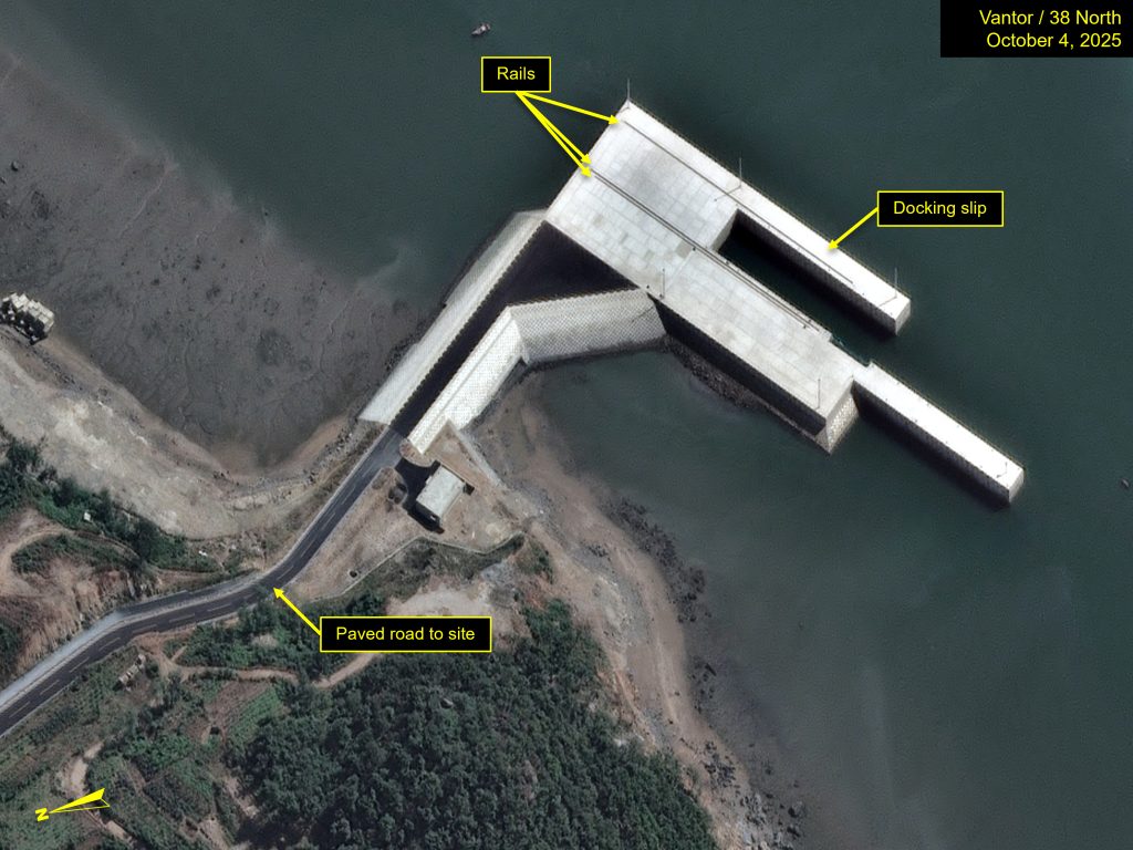 Building exercise first reported in March 2025 continues to progress, however at a slower tempo than beforehand noticed. The docking slip on the seaport to accommodate massive vessels seems to be full, reaching into the ocean to keep away from impacts of extreme tides. Rails situated alongside both facet of the slip will probably assist an overhead, touring gantry crane. A. This can be to assist a heavier crane base on the north facet to higher assist the crane in transferring hundreds from vessels onto vans. As well as, 5 lattice masts have been erected alongside both facet of the pier, prone to assist flood lights. The coastal highway main from the port to the launching station is now fully paved.