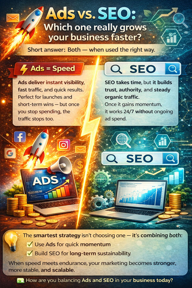 In digital advertising, few debates are as widespread—or as deceptive—because the query of Adverts versus website positioning. Enterprise house owners are sometimes pushed to decide on one, as in the event that they have been competing ideologies. In actuality, this framing misses the purpose completely. Paid promoting and SEO will not be rivals. They’re essentially completely different progress engines, every designed to resolve a special downside.