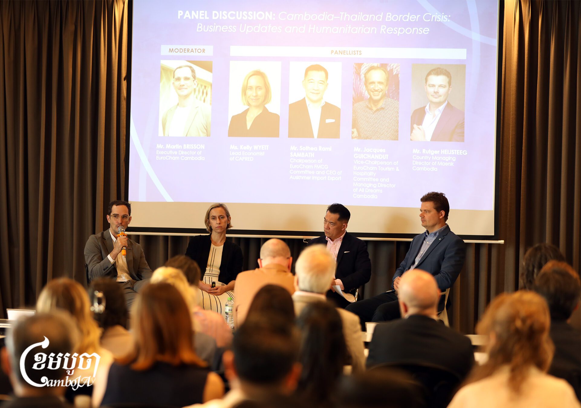 At an occasion in Phnom Penh Tuesday hosted by the European Chamber of Commerce in Cambodia (EuroCham) and the U.N. kids’s company, audio system known as for nearer coordination between the non-public sector, authorities and support teams, citing the continued impacts of final 12 months’s lethal border clashes earlier than a ceasefire.