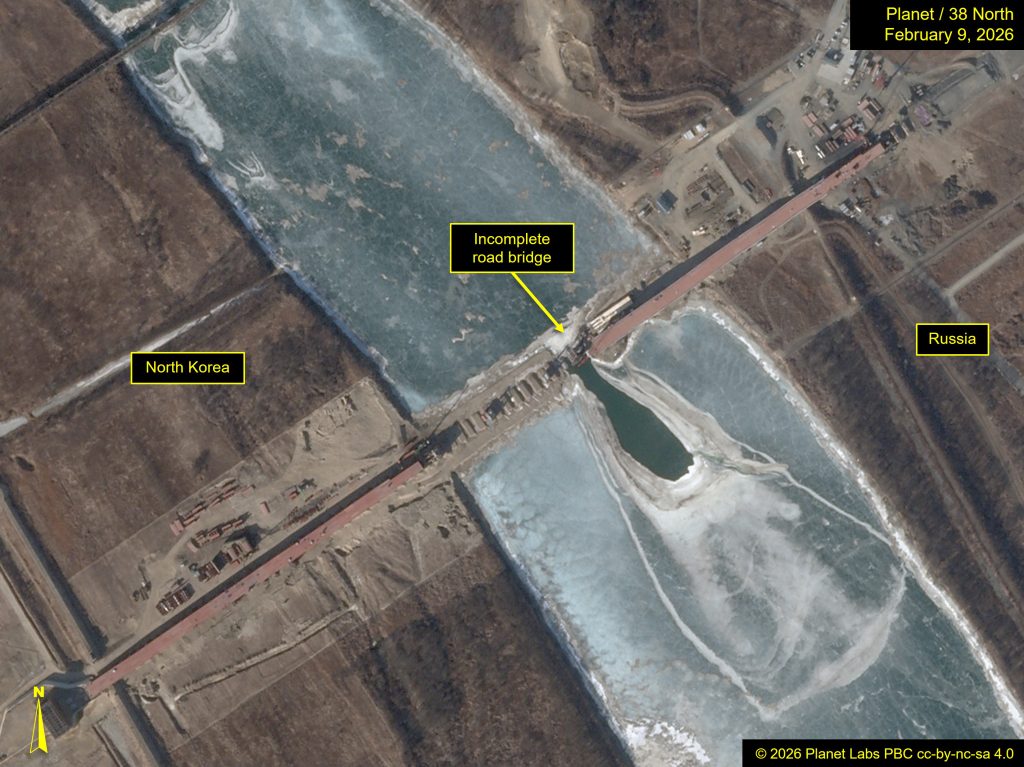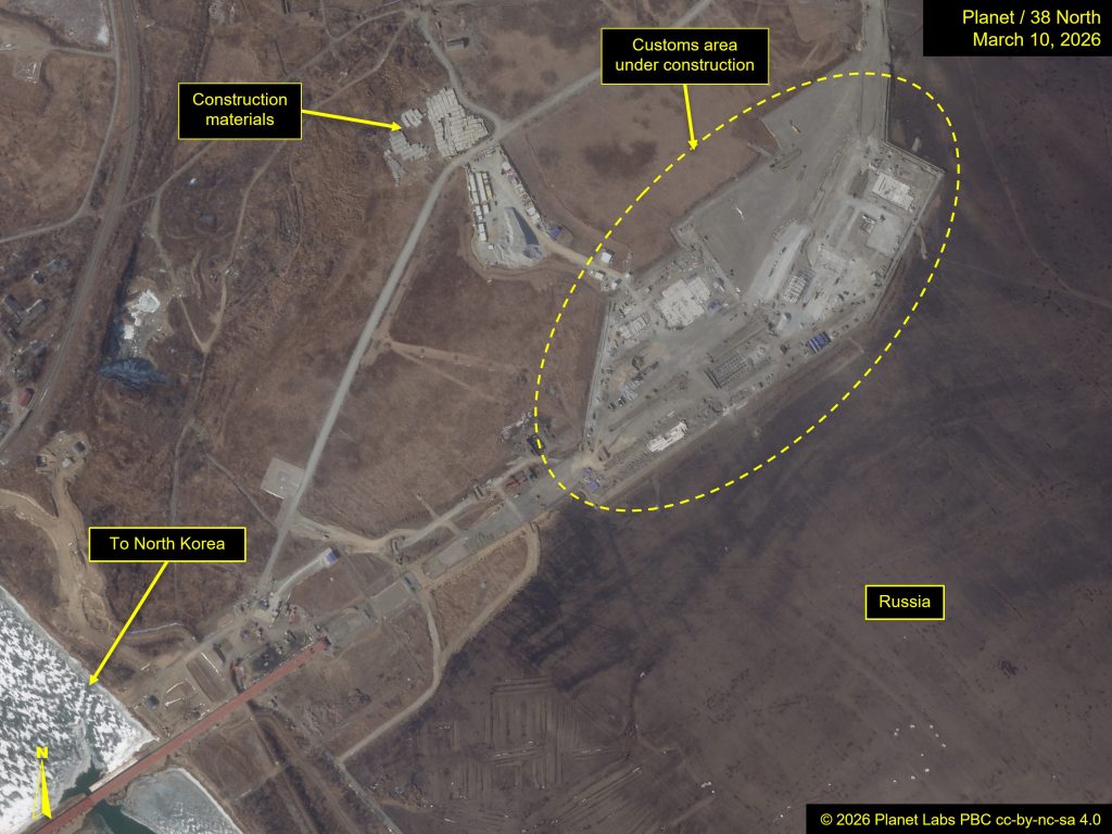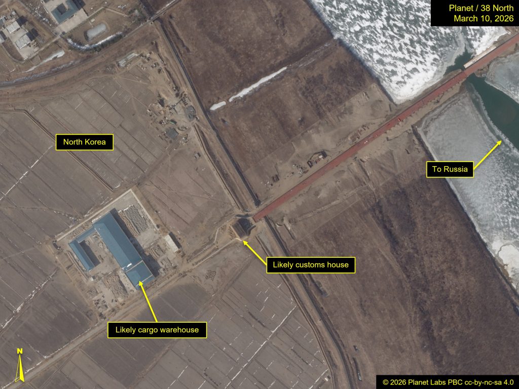 On the Russian facet, a bigger customs space is underneath development. On the North Korean facet of the bridge, a possible customs constructing stands on the finish of the bridge and a probable cargo warehouse has been constructed close by.