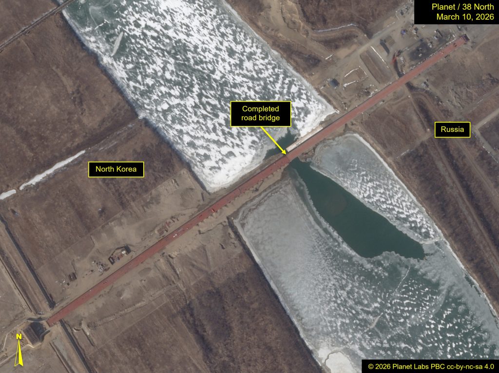 Earlier reporting from January 2026 indicated that work on the bridge footings had progressed, however have been quickly damming the river to circulate by a gap simply 40 meters huge. Imagery from February 9 reveals a spot of round 210 meters between bridge decking that had already been laid. By late February, medium decision imagery confirmed the 2 sides have been near assembly. On excessive decision imagery from March 10, the decking could have been bodily linked, or there could stay a small hole between the 2 sides.