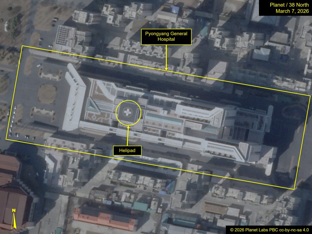 An similar helipad with a big painted “+” image sits atop the Pyongyang Common Hospital which opened in 2025, though North Korea just isn’t recognized to have a medical helicopter service.