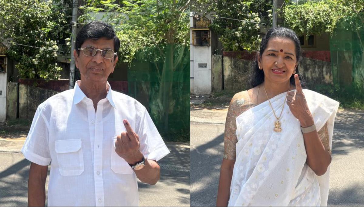 Mother and father of actor-politician Vijay, director-producer Chandresekhar and singer-producer Shoba, forged their votes at a polling sales space in Chennai, on April 23, 2026